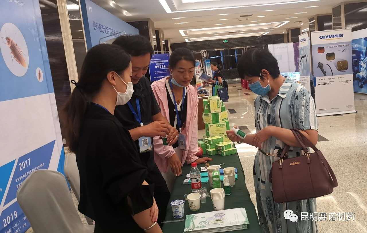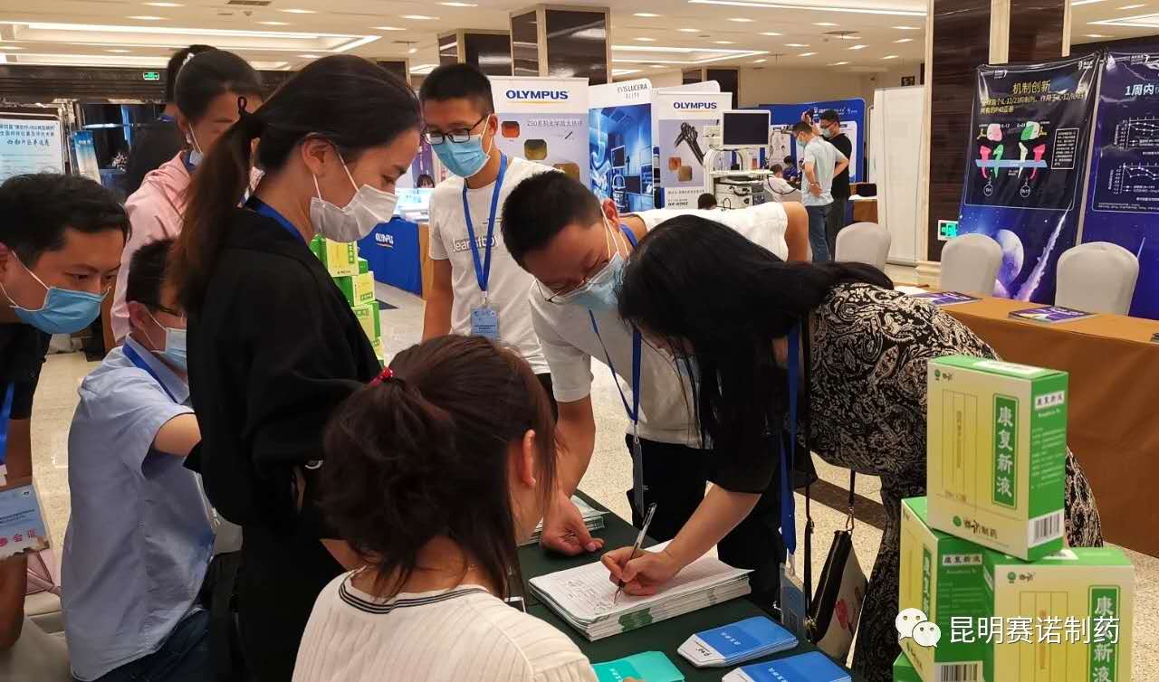 會(huì)議設(shè)置展區(qū)陳列,多家知名藥企匯聚于此,賽諾制藥作為昆明本土企業(yè),向參會(huì)的各方人員,展示了我公司原研產(chǎn)品康復(fù)新液。