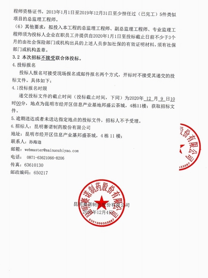 昆明賽諾制藥股份有限公司《中藥原料藥提取基地和綜合生產(chǎn)車間建設(shè)項目》建設(shè)工程監(jiān)理招標公告